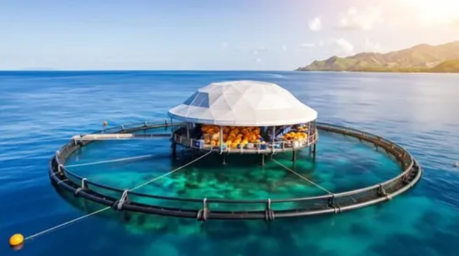 ۴. پرورش ماهی در قفس دریاچهها، سدها یا دریا ظرفیت تولید بالا مناسب برای قزلآلا، ماهیان دریایی، سیباس، سوکاس وابسته به شرایط اقلیمی و کیفیت آب منابع بزرگ