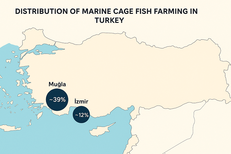 مناطق جنوبشرقی (Mersin, Hatay, İskenderun Bay) هم مزارع قفس و طرحهای جدید (از جمله گونههای مختلف و مزارع بزرگتر) دارند، ولی هستهٔ تولیدِ سنتی بیشتر در غرب/جنوبغرب است. sosyalarastirmalar.com+1